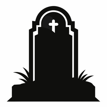 recommend clip art: Tombstone front facing silhouette line art vector illustration