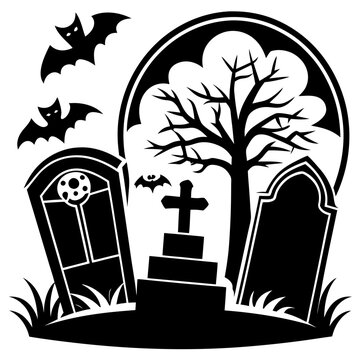 recommend clip art: Clipart Image of A Spooky Jack O Lantern In Front of a Tombstone In Black and White
