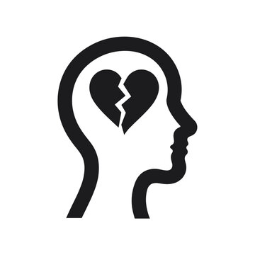 recommend clip art: Line art illustration of a head with a broken heart. Symbolizes heartbreak, sadness, grief, loss, and emotional pain. Perfect for mental health, relationships, and heartbreak concepts