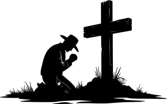 recommend clip art: Soldier Kneeling At Cross Silhouette
