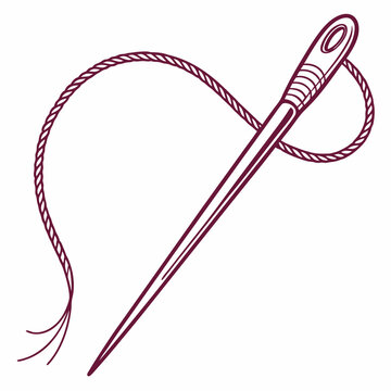 recommend clip art: Continuous line drawing of needle and thread minimalist sewing tool outline vector illustration