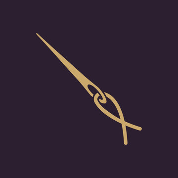 Needle and thread silhouette icon vector. Tailor logo with needle symbol and curved thread, tailor and shoemaker needlework tool, sewing element. Dark colored needle and thread.