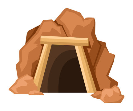 recommend clip art: Ground pit hole in cartoon with stones and soil. Dirty brown underground dig or mine, burrow, pile. Vector illustration isolated on white background.