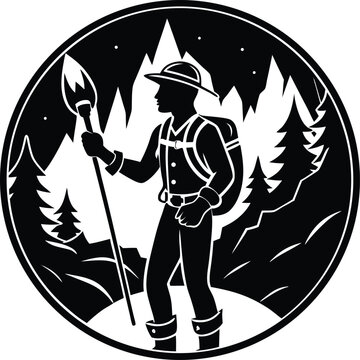 recommend clip art: bag illustration scout silhouette adventure logo backpack icon equipment outline travel hiking tourism journey kid tourist explorer exploration scouting shape traveler outdoor children for vector