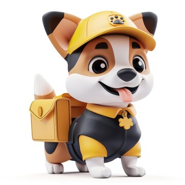 recommend clip art: Cute Cartoon Dog in Blue Cup with Paw Print Icon and Sailor Hat, White Background