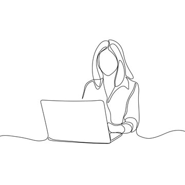 recommend clip art: Continuous line drawing of happy young business woman holding briefcase. Single one line art of office worker. Vector illustration