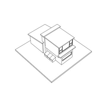 recommend clip art: Simple line drawing illustration of a two-story house with a gable roof and a small door and windows