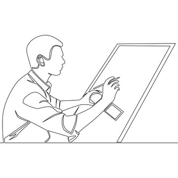 recommend clip art: Single one line drawing of young architect and house builder discussing residence blueprint with consultant. Home construction planning concept. Continuous line draw design graphic vector illustration
