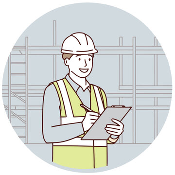 recommend clip art: businesswoman in a protective helmet looking at the drawings of the new project.