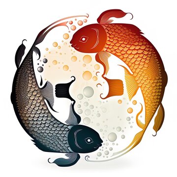 recommend clip art: cartoon-style clip art illustration of yin and yang pattern, koi carp. Perfect for web designers, publishers, and content creators Generative AI