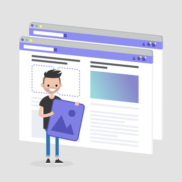 recommend clip art: Millennial female character addicted to a smartphone. Modern lifestyle.  Nomophobia. Banana peel. Flat editable vector illustration, clip art