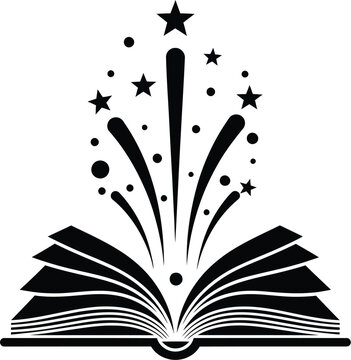 recommend clip art: line drawing of a magic hat with a wand, featuring stars and sparks emerging from the hat.