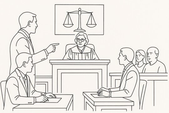 recommend clip art: Desk and chairs of judges for official hearings and sentencing in a courtroom, vector cartoon illustration on a white background