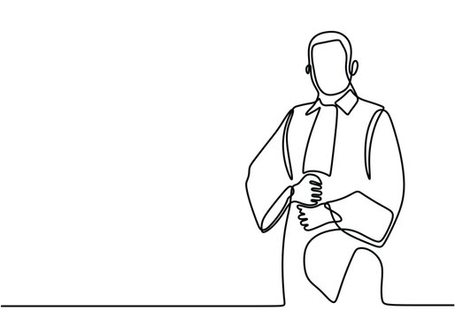 recommend clip art: Man wearing toga in One continuous line drawing style. Male character professional judge lawyer.