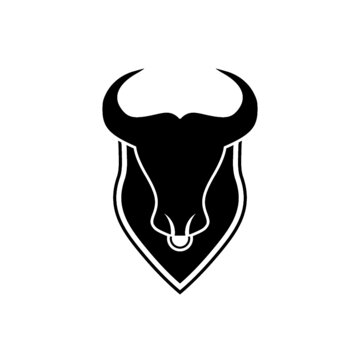 recommend clip art: Logo image of a bull, cow, black and white, for design, on a white background.