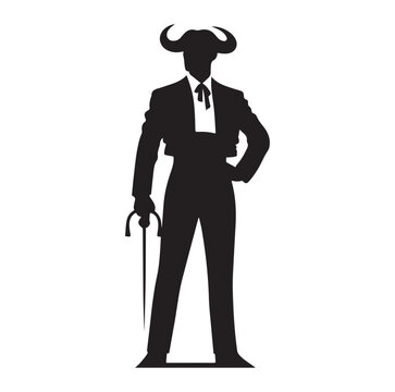 recommend clip art: Solid black silhouette of a matador daring, Vector Graphic