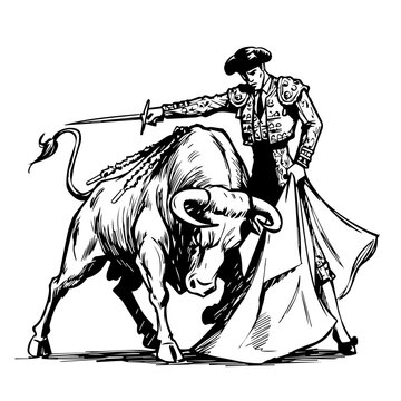 recommend clip art: Standing bullfights bull vector silhouette illustration isolated. Breeding bull shape shadow quality genetic material insemination. Organic food. Strong animal, powerful bull horns fighting in corrida