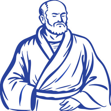 recommend clip art: simple line drawing of a cute cartoon character, wearing a traditional Chinese bun on its head and a white robe