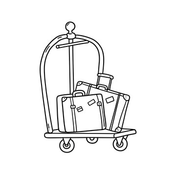 recommend clip art: Luggage cart icon. Black silhouette design. Minimalist travel symbol. White background.