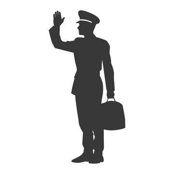 recommend clip art: silhouette bellboy hotel in action full body black color only