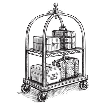 recommend clip art: Male hotel employee and cart silhouette vector, people