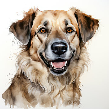 recommend clip art: Anatolian Shepherd Dog digital art illustration watercolor hand drawn pet. Anatolian Shepherd dog muscular breed with thick neck, broad head, and sturdy body, white cream color portrait