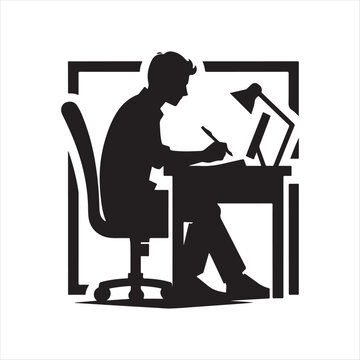 recommend clip art: icon man at desk, at table, working day, document, stick figure, human silhouette, isolated on transparent