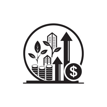 recommend clip art: Vector illustration of money and investment. Black silhouette over white background.