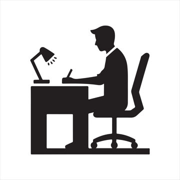 recommend clip art: Programming, man sitting at desk and working on computer, isolated vector silhouette, side view