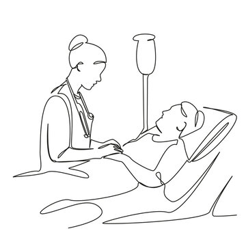 recommend clip art: One continuous single drawing line art flat doodle medical, rehabilitation, adult, treatment, patient, physiotherapy, osteopath, old. Isolated image hand draw contour on a white background