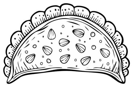 recommend clip art: hand-drawn illustration of an empanada with a braided crust edge and dotted detailing.