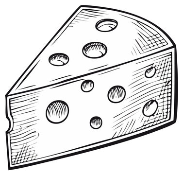 recommend clip art: Stylized black and white vector illustration of cheese. Cheese wheel. Isolated on white. Hand drawn illustration, menu label, banner poster identity, branding.