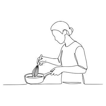 recommend clip art: Chef cooking food continuous one line drawing. People making food at kitchen . Vector illustration minimalist background.