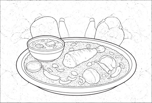 recommend clip art: Sufganiyah doughnut traditional Hanukkah dish. Happy Hanukkah Illustration. Coloring page. Line Art.